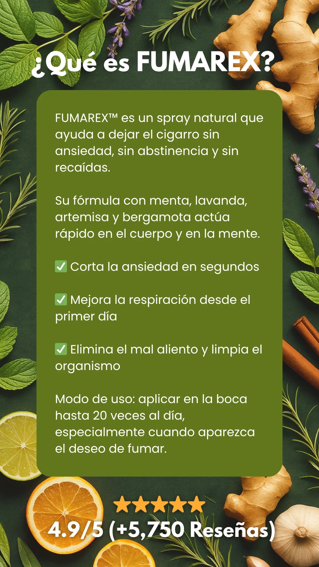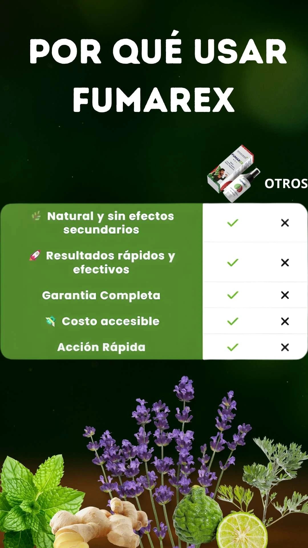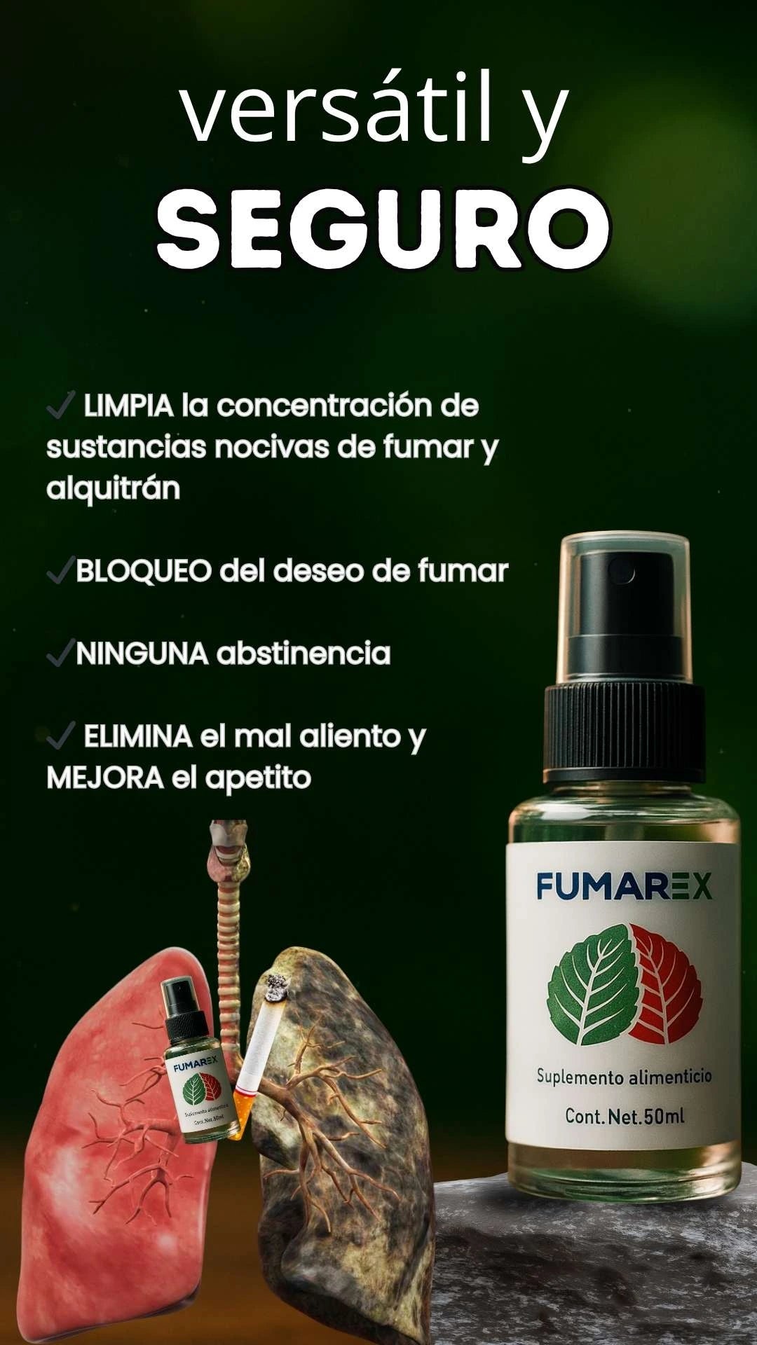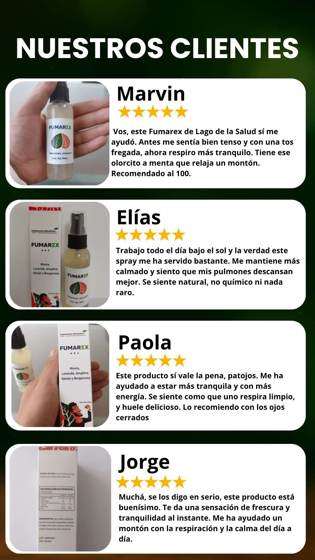 "Fumaba 15 cigarros al día.Probé de todo y nada funcionó. Con Fumarex, en 3 días ya no sentía ansiedad. Hoy llevo 2 meses limpio. Respirar así es otra vida."